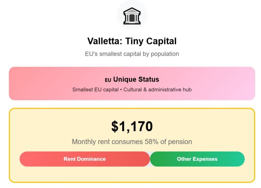 The result is that while Valletta offers English as an official language and a healthy Mediterranean lifestyle, living there demands tight financial control with almost no margin.