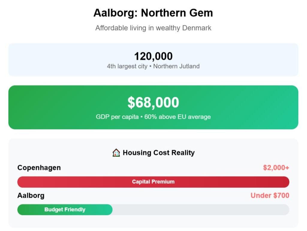 In Denmark, we chose Aalborg, in the northern part of Jutland, with about 220,000 residents, making it the fourth-largest city in the country. Denmark as a whole is among the wealthiest EU members, with GDP per capita above $68,000, nearly 60% higher than the EU average.