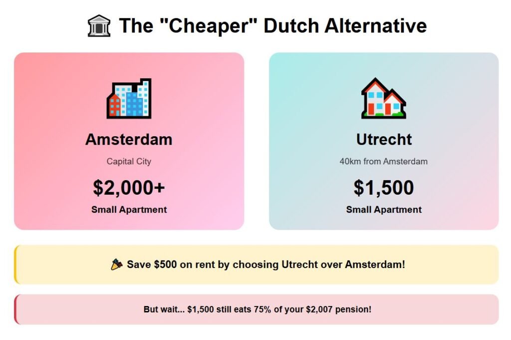While Amsterdam’s rents often cross $2,000, Utrecht averages closer to $1,500 for a small apartment. Even cheaper than the capital, it is not a place one could call “cheap.”