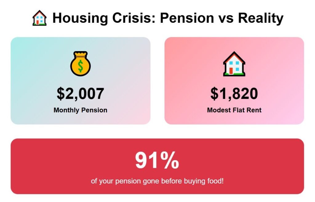 Luxembourg City is best known as a hub for banking and EU institutions, and like most financial hubs, housing costs are sky high. Rent averages $1,820 for a modest flat, which already consumes 91% of a $2,007 pension.