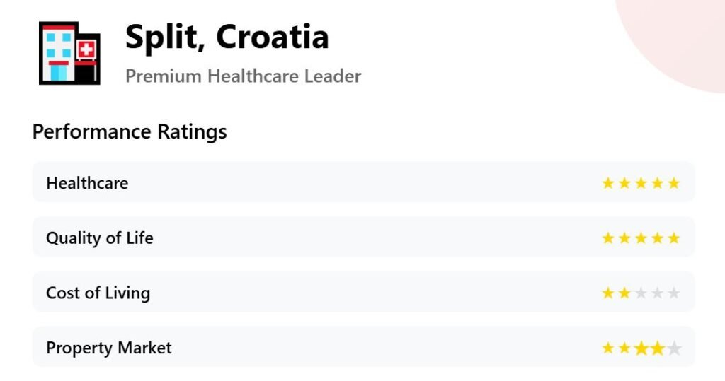 Split itself also has multiple renowned institutions. For expats, this means appointments in days (not months), English-speaking staff, and outcomes tracked to global benchmarks. A Croatian told us this about healthcare: “Dermatology, dental, and eye surgery are all a big thing in Croatia as medical tourism because our private clinics are really good and not that expensive compared to the rest of the EU, and if you compare to American prices, then we are really cheap!”