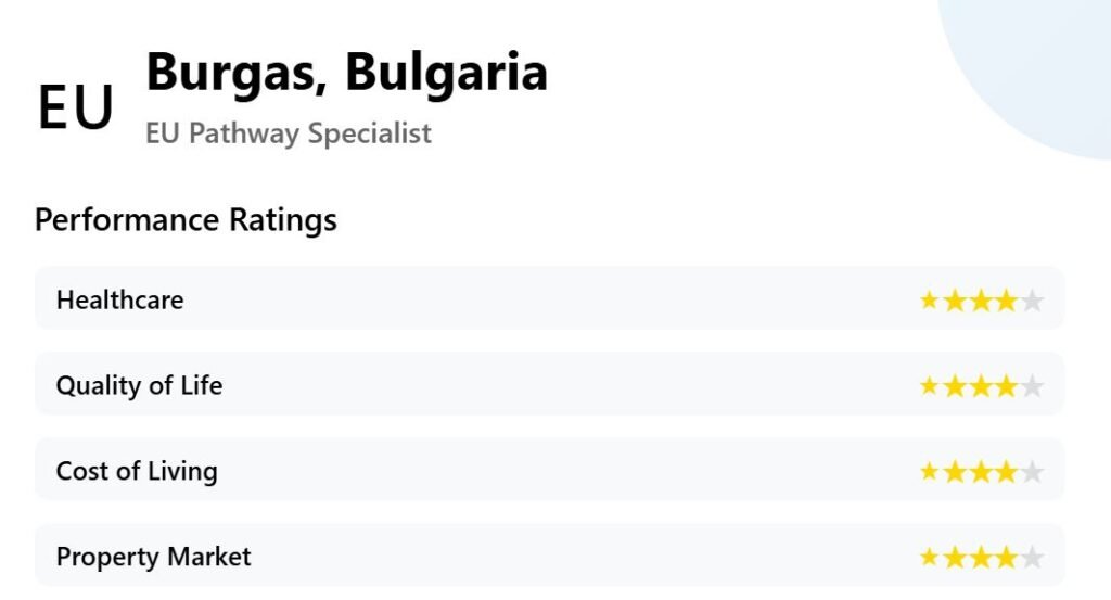 Burgas, Bulgaria, provides EU leverage and multiple paths to residency. Costs are moderate; infrastructure is decent. Property security is solid, though growth is slower than Montenegro’s.
