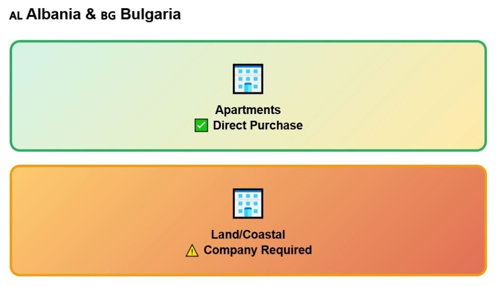 Property often becomes the trickiest part of moving abroad. Prices range from 1,284 per square meter in Vlorë to 5,885 in the best parts of Split. But headline prices tell only part of the story — ownership rules, transaction costs, and market stability matter just as much.