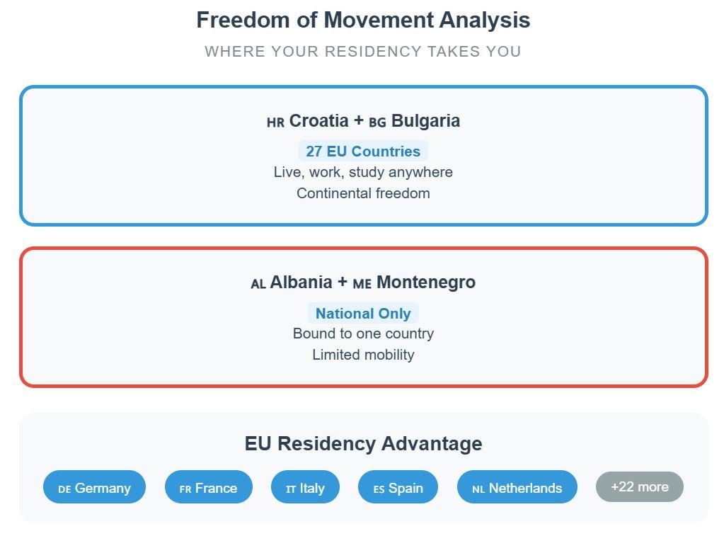 Residency rules determine how far your life abroad can stretch — whether you’re confined to one country or gain access to an entire continent. For non-EU citizens comparing Croatia, Albania, Bulgaria, and Montenegro, the contrasts are sharp. Some programs demand high income or capital; others are accessible with modest pensions.