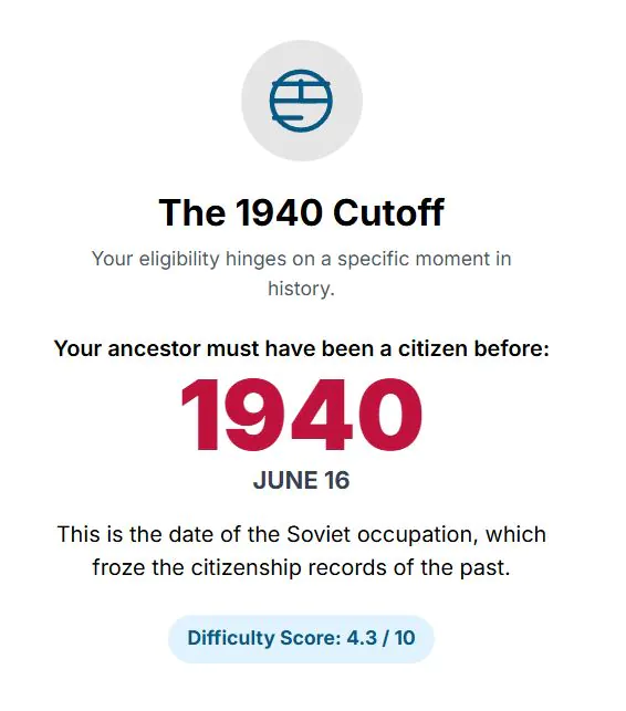 This creates another excellent pathway for families displaced during the turbulent 20th century. Lithuania requires your ancestor to have held Lithuanian citizenship before June 15, 1940, when the Soviet occupation began.