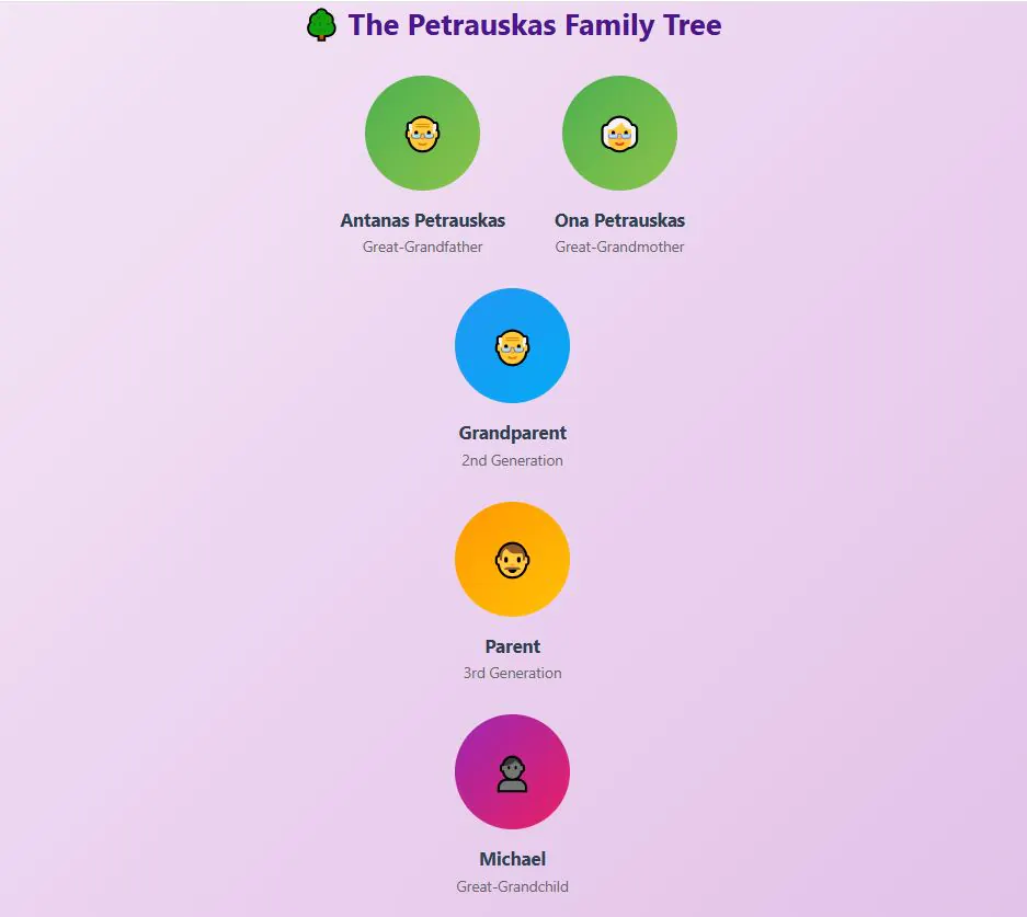 His great-grandparents Antanas and Ona Petrauskas emigrated from Kaunas to New Philadelphia, Pennsylvania, in 1919, just after World War I damaged their homeland.