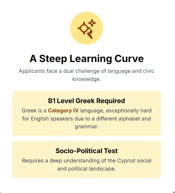 The standard naturalization route demands eight years of legal residency in Cyprus, plus proof of good character and B1 level Greek language proficiency.
