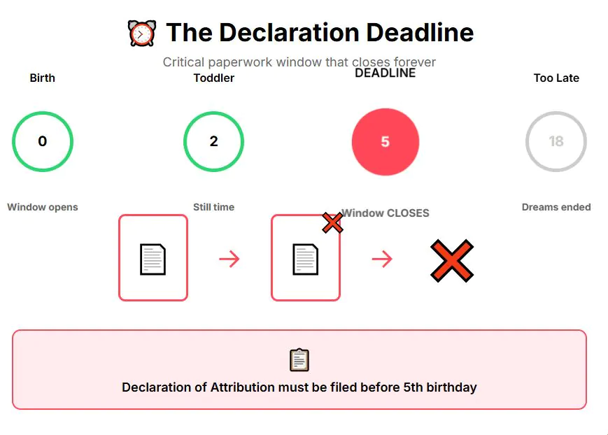 If he didn’t file that declaration before your fifth birthday, Belgian law treats you as if you have no Belgian connection at all. For those who missed this deadline, the alternative involves 5-10 years of legal residency in Belgium, plus language and integration tests.