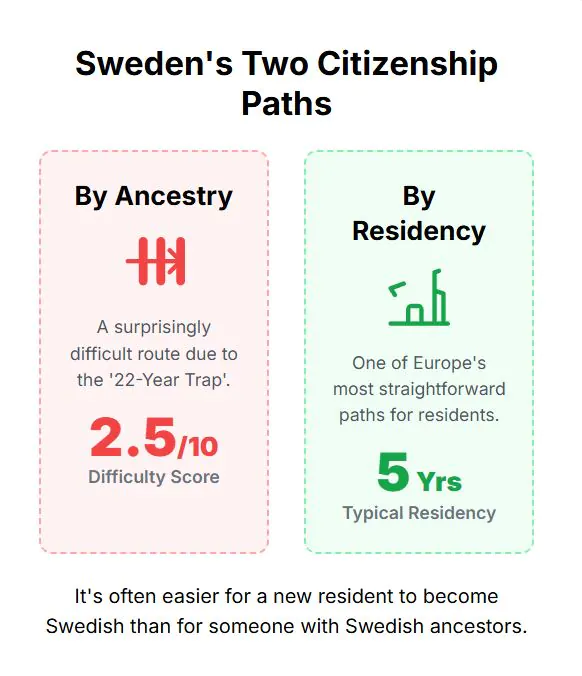 Your Swedish grandfather might have been born in Stockholm, but if he moved to America as a child and never returned or applied to retain citizenship, he lost it at 22. Like Finland, this rule has likely cut off many ancestry-based claims for families who emigrated decades ago.