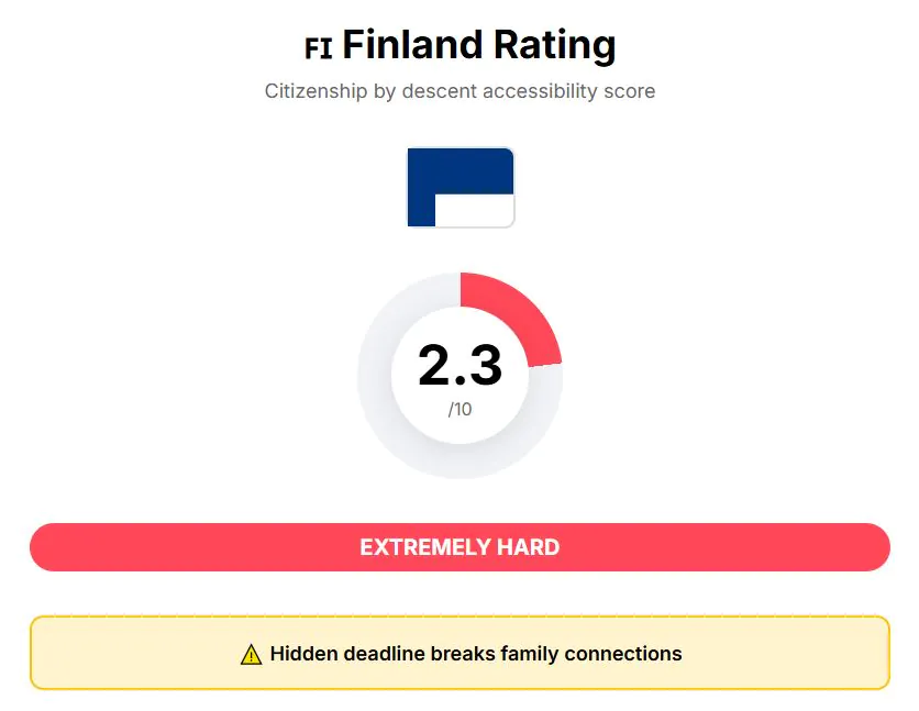 Finland’s score is 2.3 out of 10, and there’s a specific rule that has likely severed your family’s connection forever. Even if one of your parents was born Finnish, you might not qualify due to a little-known deadline.