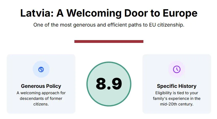 Latvia scores 8.9 out of 10, offering one of the most generous policies in Europe for those with the right historical connection.