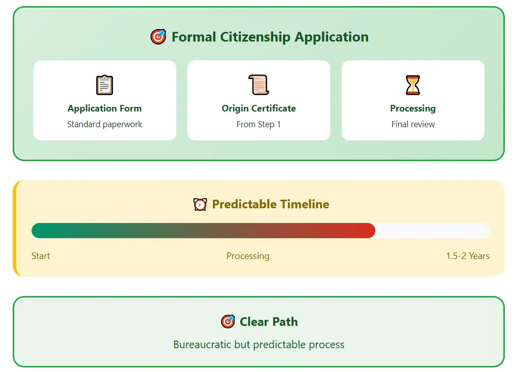 The process involves confirming the citizenship you already legally hold rather than applying for new citizenship.
