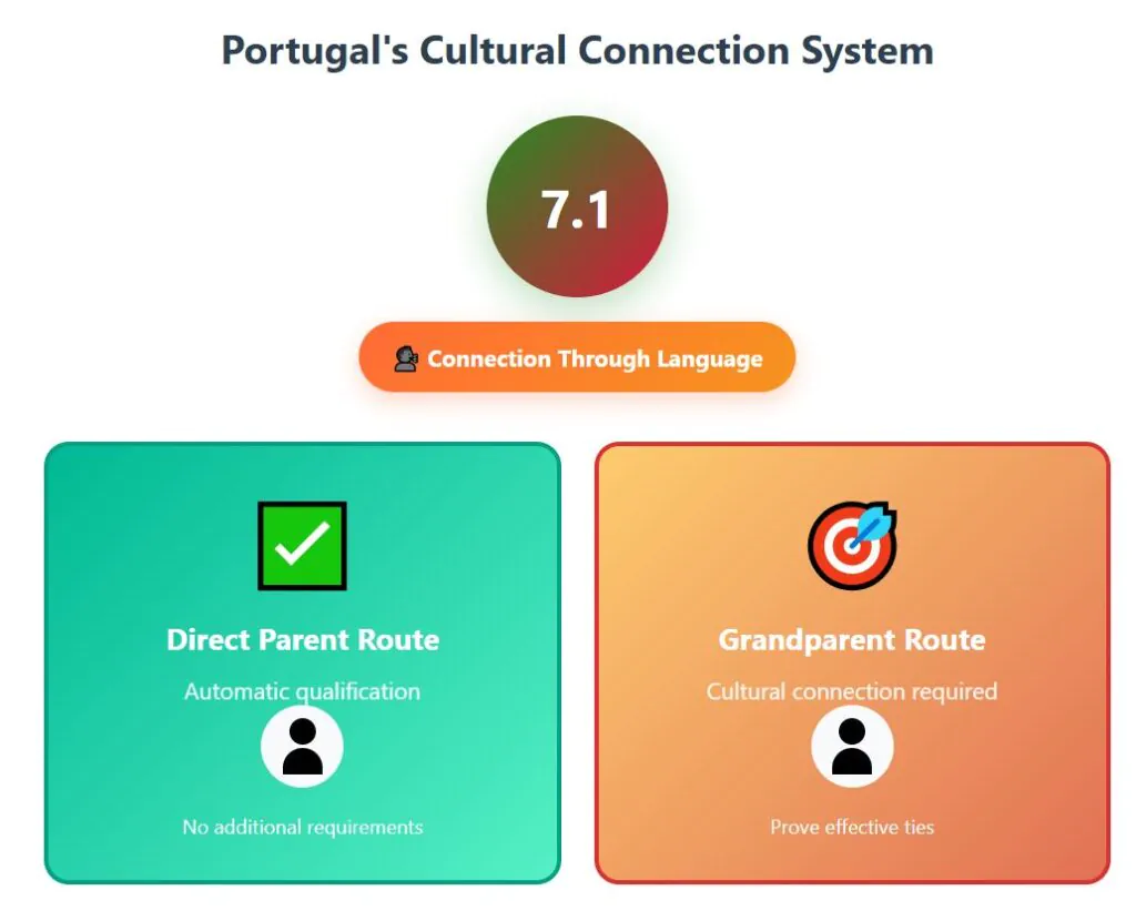 This creates two completely different pathways depending on how close your Portuguese ancestor is to you. The automatic parent pathway is straightforward – if you have a Portuguese parent, you qualify without additional requirements.