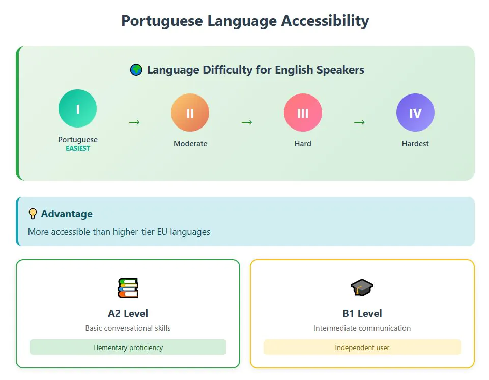 The language requirement prevents Portugal from entering the top tier of accessibility, though it remains manageable for dedicated applicants.