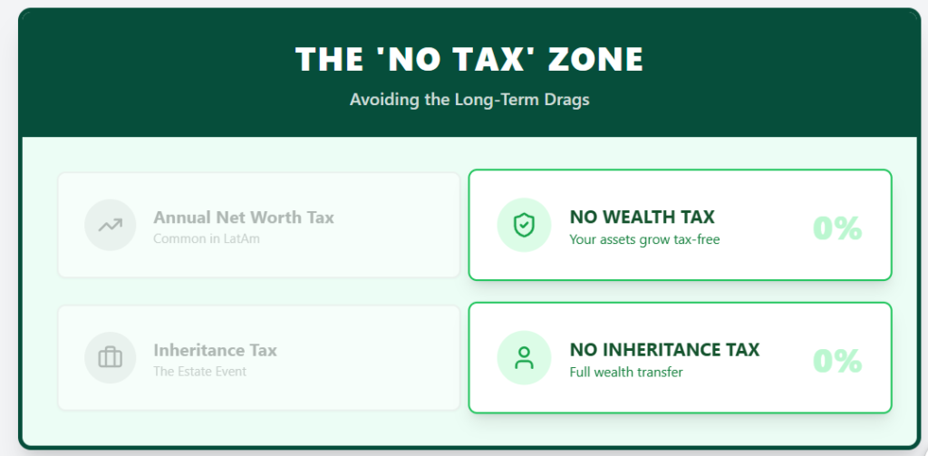 Paraguay also removes two taxes that create long-term drag elsewhere. It has no wealth tax and no inheritance tax.
