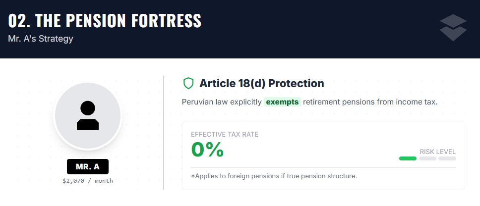 This creates a long runway where you can live in Peru with your foreign income free of taxes. For Mr. A, Peru gets simple fast.