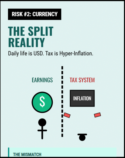 That mismatch is where the trouble starts. Even a small income in US dollars becomes a huge income when converted to their extremely devalued currency.