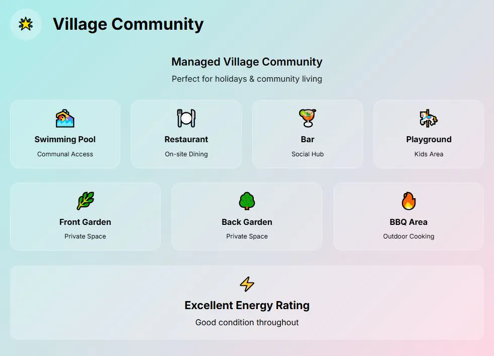 The Mediterranean climate here creates perfect conditions for both wine grapes and year-round outdoor activities, with warm summers averaging 28-31°C and mild winters with daytime temperatures of 8-12°C. You can enjoy outdoor activities and the local landscape throughout the year in this community of 2,000 residents.