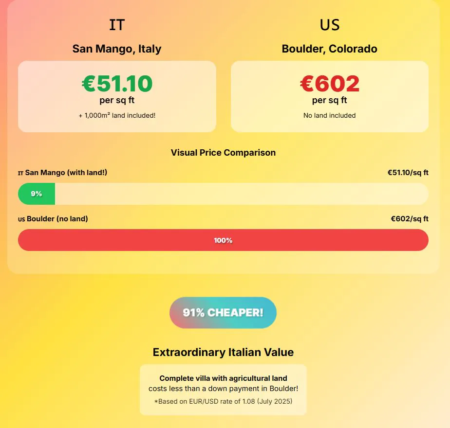 Why spend $785 per square foot in San Diego when you can own an Italian villa for just $31 per square foot