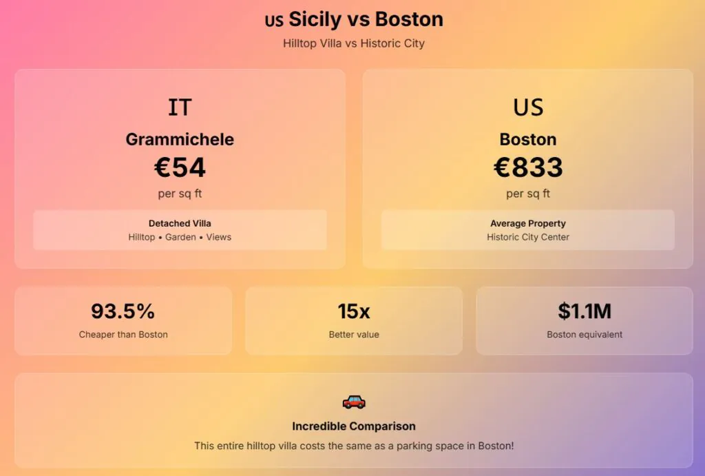You can buy an entire Italian villa for less than what Americans pay for a parking spot.
