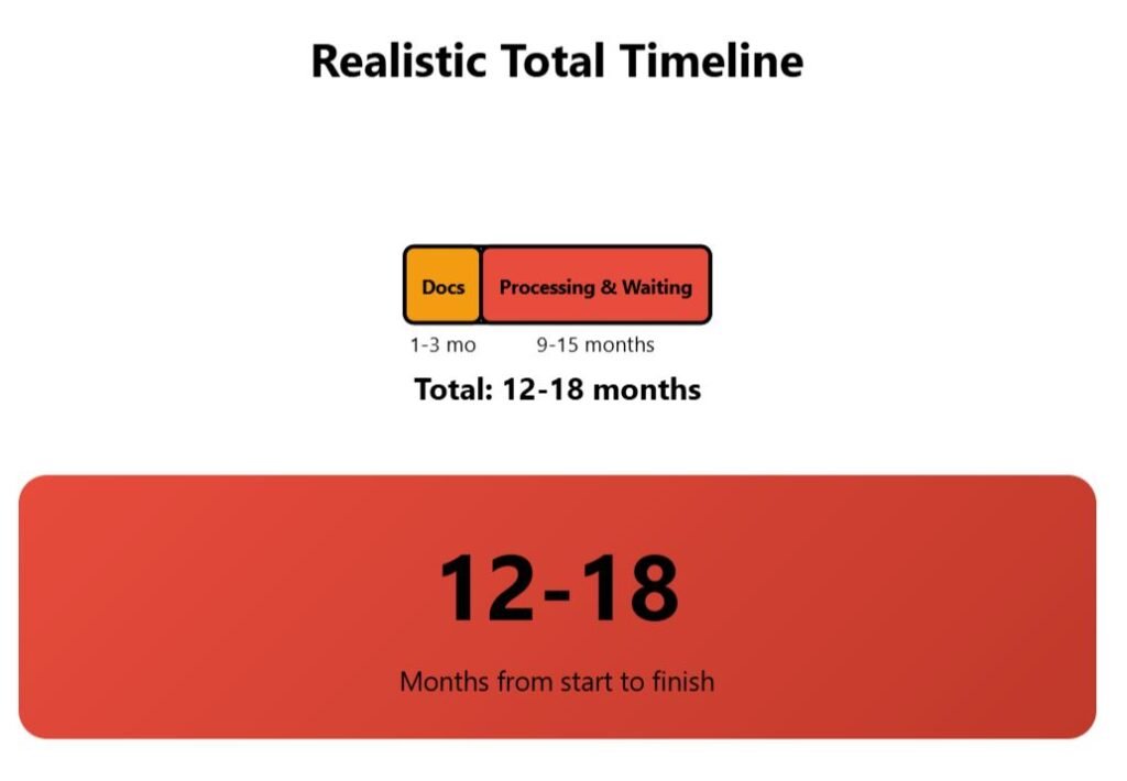 Plan for a 12 to 18-month total timeline from document gathering to final approval. Maintain backup housing arrangements and financial cushions for extended waiting periods.