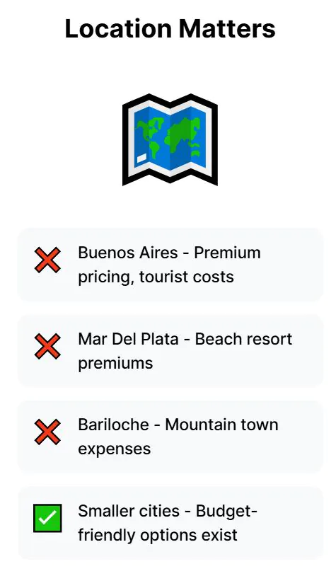 Housing costs destroy the US$1,000 budget before you buy groceries, and a one-bedroom apartment in Buenos Aires runs US$500 to US$1,000+ monthly.
