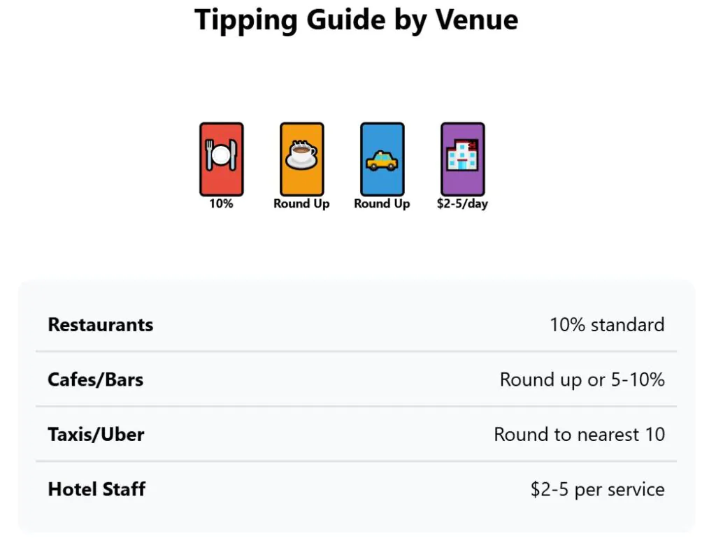Word spreads in service communities about customers who don’t tip appropriately. Rounding up bills or modest tipping shows cultural awareness and respect for local economic realities.