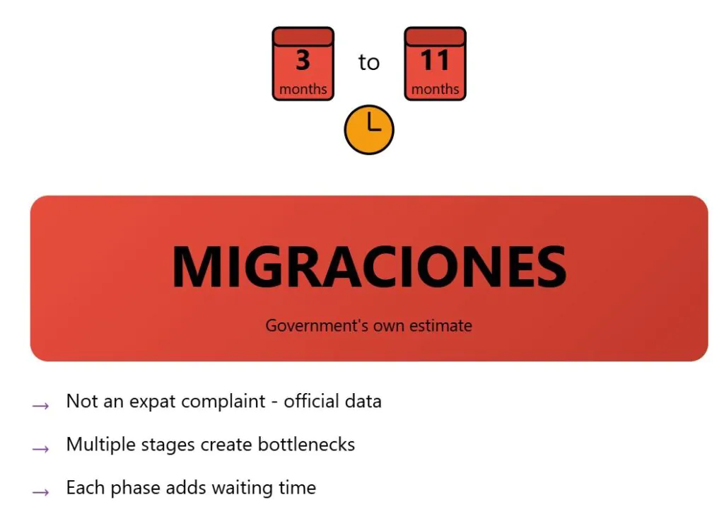 Official processing times stretch 3 to 11 months through Argentina’s Immigration Department, known as MIGRACIONES. The process involves multiple stages: online pre-application, mandatory in-person interview, and lengthy internal document processing. Each stage creates bottlenecks that extend your timeline.