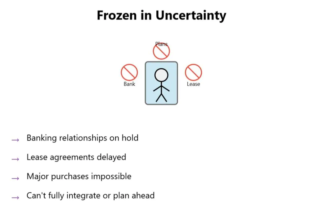 During the processing limbo period, you’re financially and logistically frozen. You can’t fully integrate or plan long-term while your status remains uncertain.