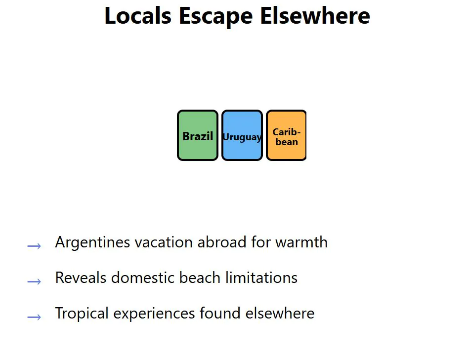 Capital residents must travel hours to reach actual ocean beaches. Locals often travel to neighboring countries for truly warm beach vacations, revealing Argentina’s coastal limitations. Their beaches offer scenic beauty and seasonal recreation, not tropical beach retirement fantasies.