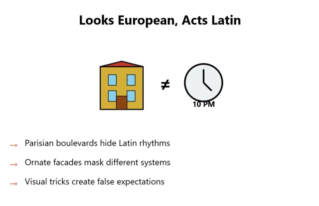 The wide boulevards, ornate facades, and Parisian-inspired cafes make Buenos Aires look like a South American Paris. But beneath the European veneer lies distinctly Latin American social norms, bureaucracy, and service standards.
