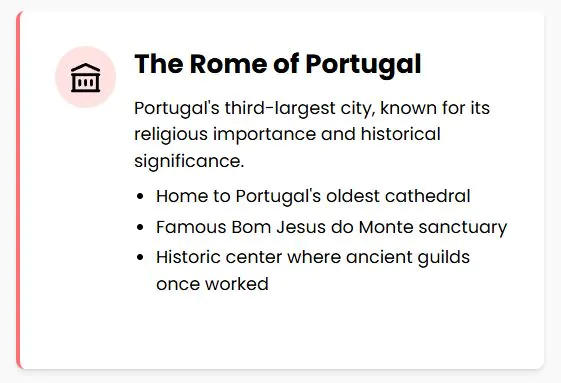 This city is Portugal’s third-largest city, known as both the “Rome of Portugal” for its religious importance and the “Portuguese Silicon Valley” for its thriving tech scene. It is home to the country’s oldest cathedral and the famous Bom Jesus do Monte sanctuary. Today, the historic center is a place where ancient guilds once worked and modern tech startups now operate.
