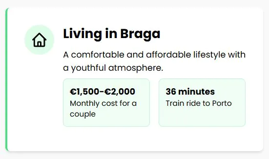 Braga is a practical choice for remote workers, offering excellent fiber internet with speeds over 140 Mbps and 10 Gbps service available. For transport, train connections reach Porto in as little as 36 minutes, giving residents easy access to an international airport without big-city housing costs.
