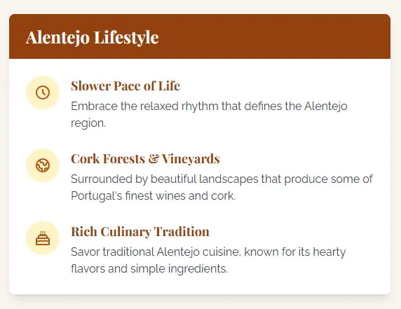 While located inland, Évora is not isolated. Regular train connections reach Lisbon in about 1 hour and 17 minutes, providing easy access to the coast and an international airport whenever needed. This allows for a life steeped in history with all the conveniences of a modern connection.