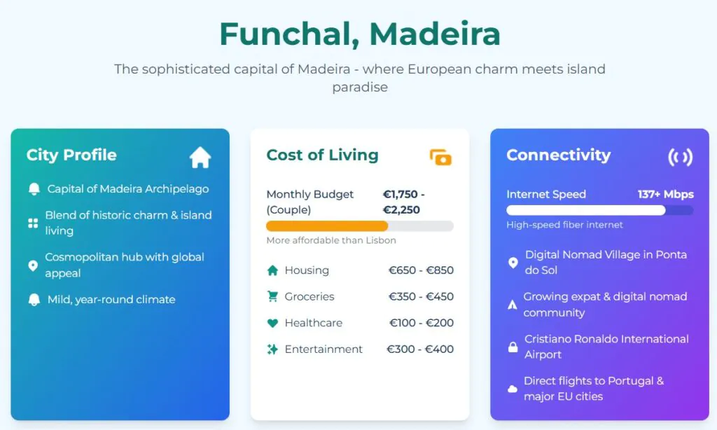 While a major tourism destination, Funchal remains surprisingly affordable for residents. A couple can live comfortably on a budget of €1,750 to €2,250 per month—cheaper than Lisbon. This attracts a large community of expats and digital nomads, supported by initiatives like the Digital Nomad Village in nearby Ponta do Sol.