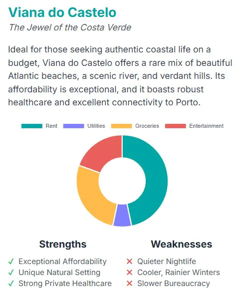 Despite its prime location, the city is very affordable. A couple can live comfortably on a budget of €1,200 to €1,700 per month, including rent. With property prices averaging just €1,152 per square meter, homeownership is a realistic goal for many. The lifestyle is relaxed, and water sports enthusiasts enjoy the shores of Praia do Cabedelo.