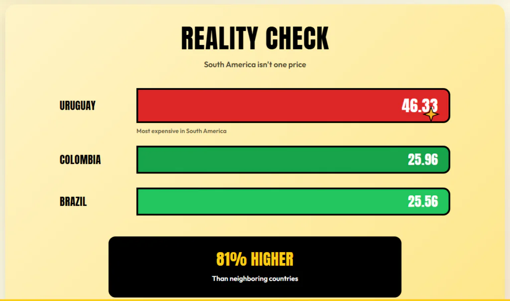 In Uruguay, your biggest surprise can be simple stuff: a car, a phone, a laptop, or a replacement part. You think you’re stepping into a calmer life, then you find the price tags for many goods look like those in Silicon Valley.