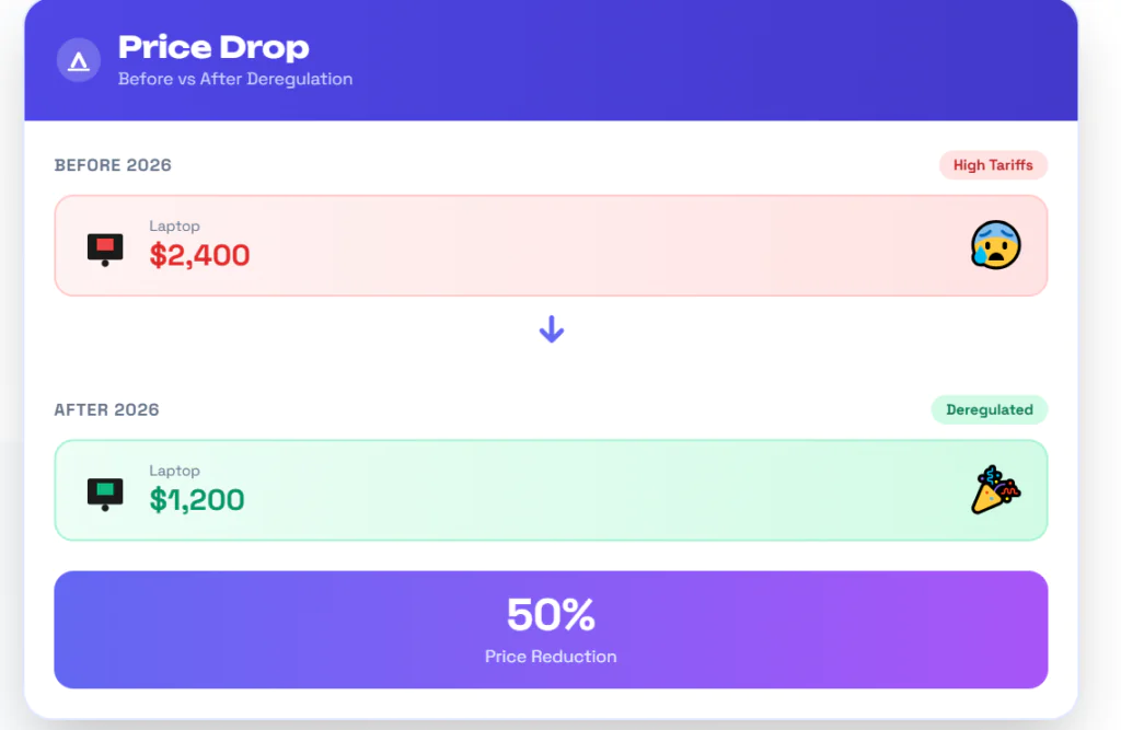 That dynamic finally shifted in January 2026. The government pushed import deregulation and rolled back tariffs to reduce tech prices to international levels.