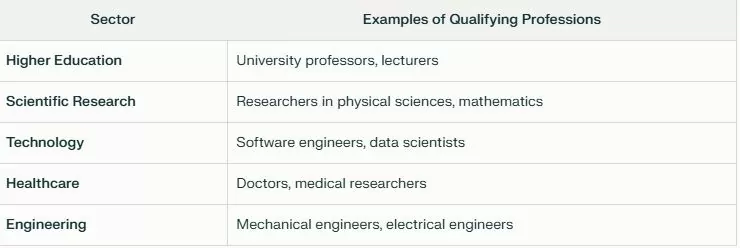 The qualifying professions list is selective: company directors, specialists in physical sciences, mathematics, engineering, doctors, and university professors make the cut – provided they have at least a bachelor’s degree or equivalent experience.