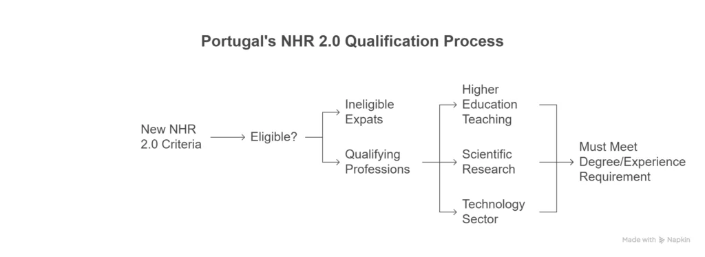 To qualify for NHR 2.0, you must work in specific sectors deemed valuable to Portugal’s future. These include higher education teaching, scientific research, technology, and other government-recognized strategic areas.